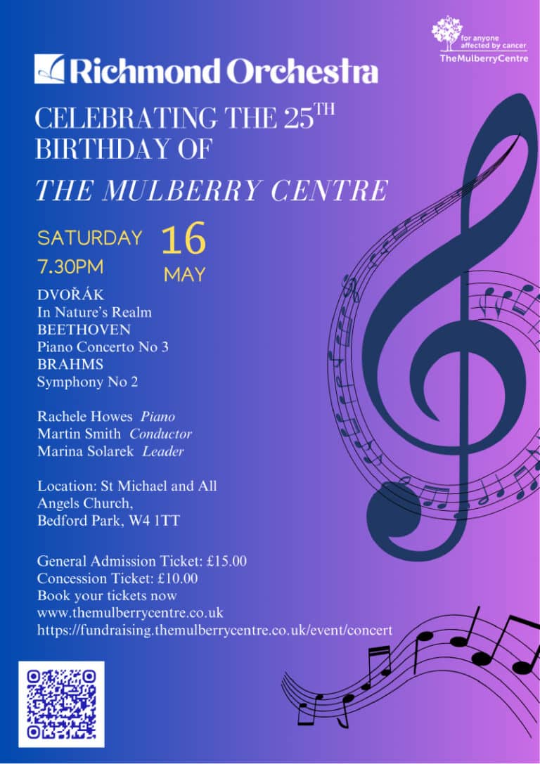 Richmond Orchestra is proud to be supporting The Mulberry Centre in celebrating 25 years of great work caring for people who’s lives are affected by cancer.